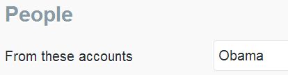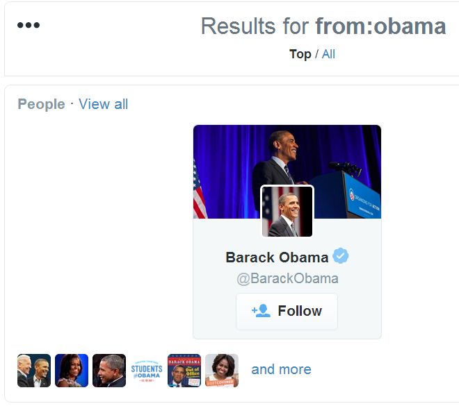 The results from this search list the users who have “Obama” in their Twitter handle: