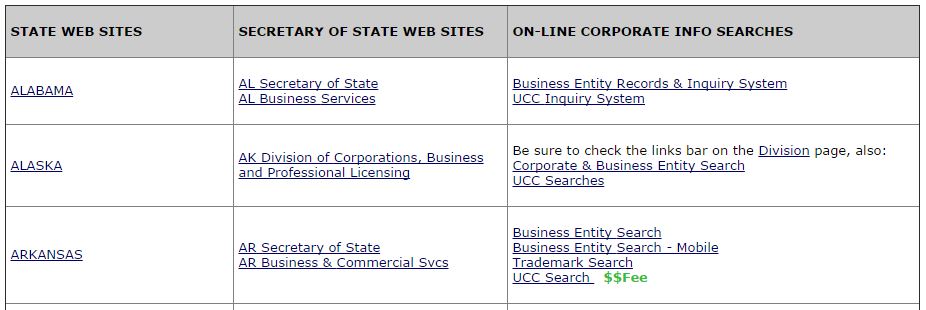 A Compilation of Secretary of State Sites: Making State of Incorporation Searches Easier